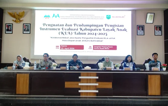 BERAU – Pemerintah Kabupaten Berau menyelenggarakan bimbingan teknis pengisian instrumen Evaluasi Mandiri Kabupaten Layak Anak (KLA) di Ruang Rapat Sangalaki Setda Berau pada Kamis (23/4/2026) demi mengejar predikat Nindya.